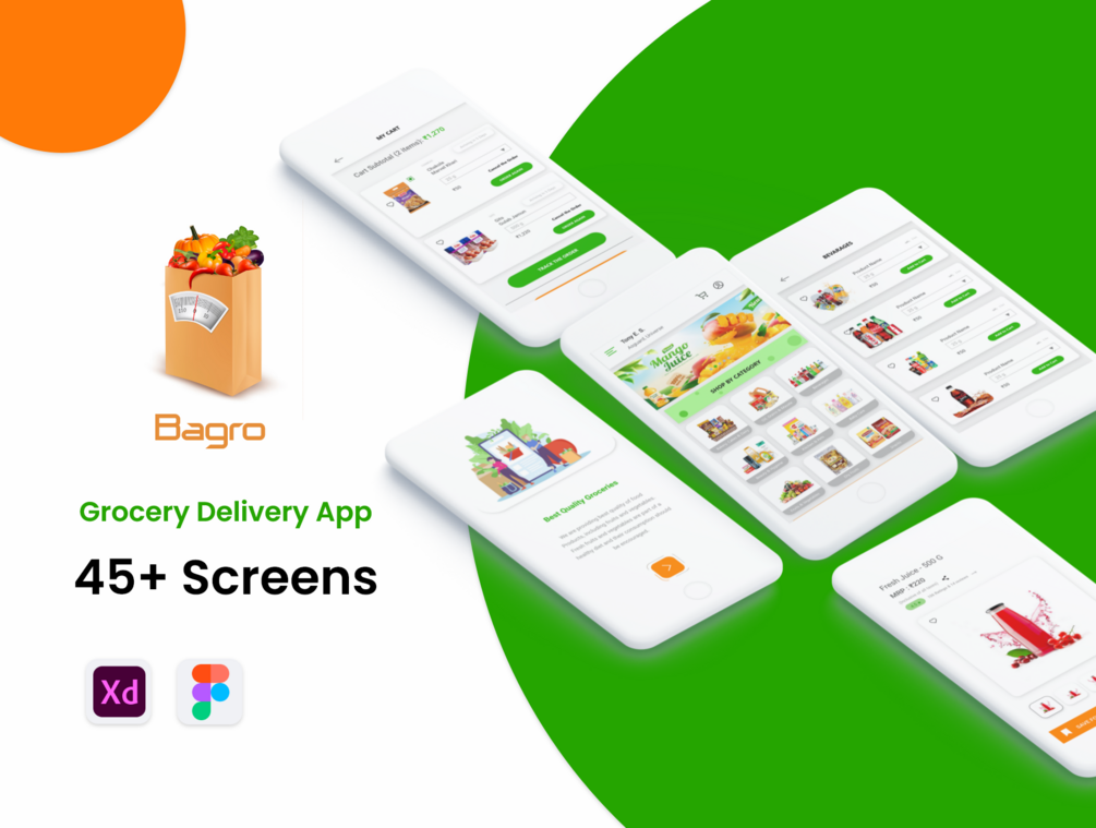 This is a Grocery Delivery App We have mainly concentrated on user-friend UI design. We have made user research and then came to a better solution for users' problems. Totally 45+ screens are there. All the necessary screens are designed. 100% UI Design screens for the Grocery Delivery App are here. The kit is easy to customizable including global color and font styles. The UI design is fully responsive and clean.